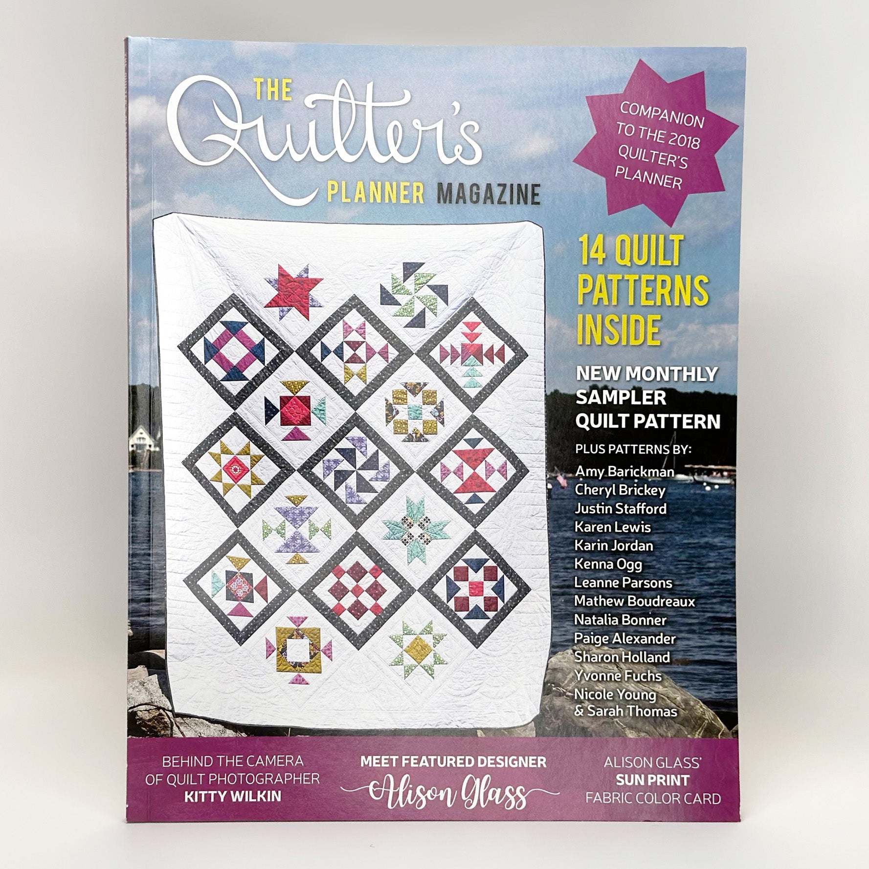 Miss out the first time around? Not to worry! You still have a chance to get this great magazine, chock full of sewing patterns for quilts, bags and a pillow. It includes the 2018 Quilter's Planner Sampler Quilt pattern by Cheryl Brickey, interviews with Alison Glass and Kitty Wilkin, and the following patterns: